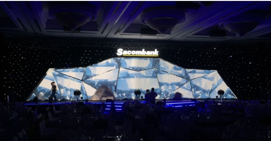 Chương trình Vững Trọn Niềm Tin với concept kim cương – chất liệu thể hiện sự sang trọng đẳng cấp,vững chắc như chính thương hiệu Sacombank trong suốt 25 năm qua. Sân khấu với hình ảnh 25 miếng kim cương ghép lại tạo thành một khối liên kết bền vững – hình ảnh của sự đoàn kết, đồng lòng vì sự phát triển bền vững của ngân hàng.